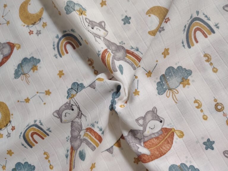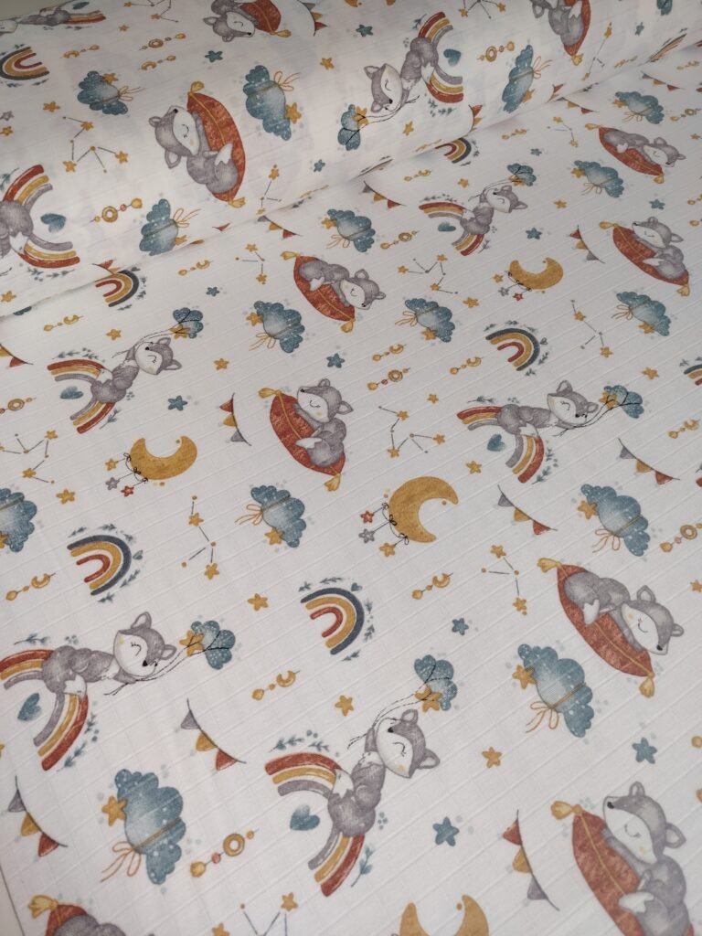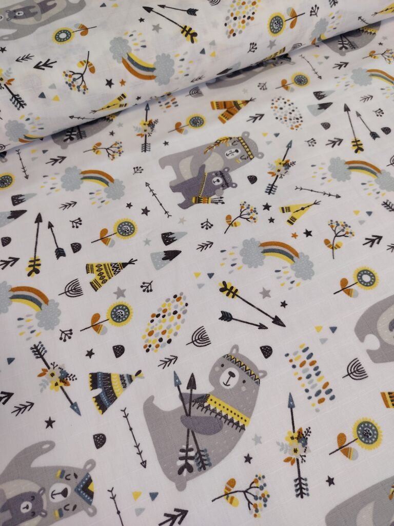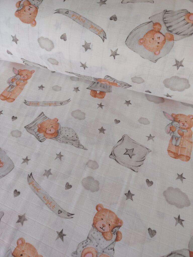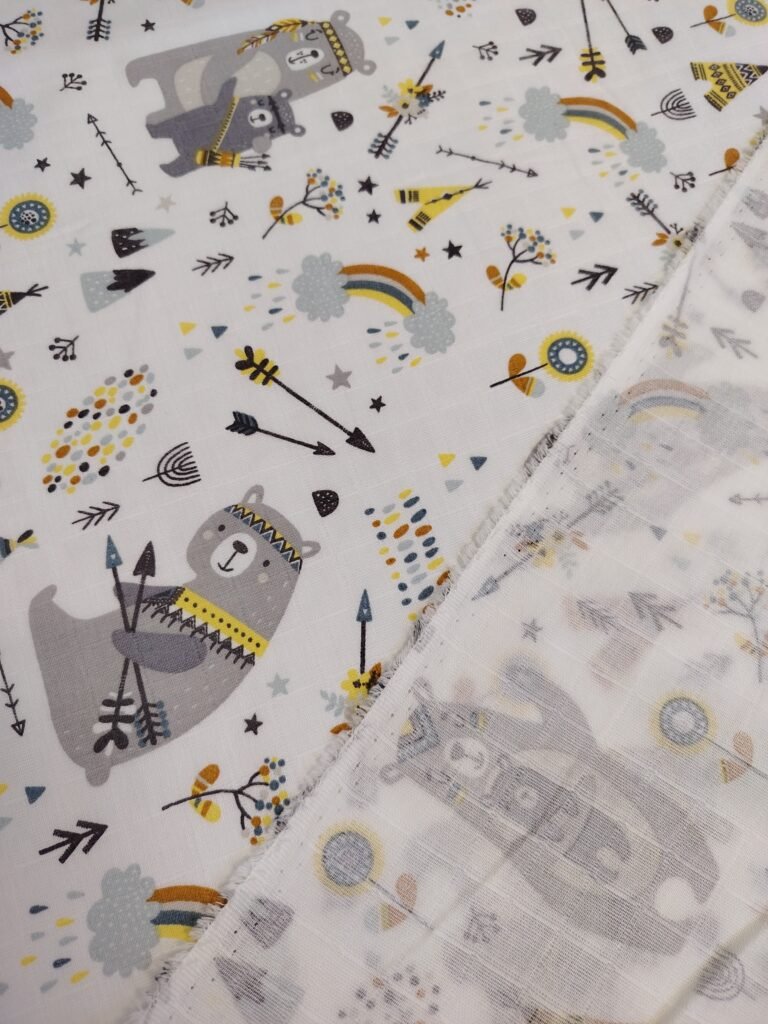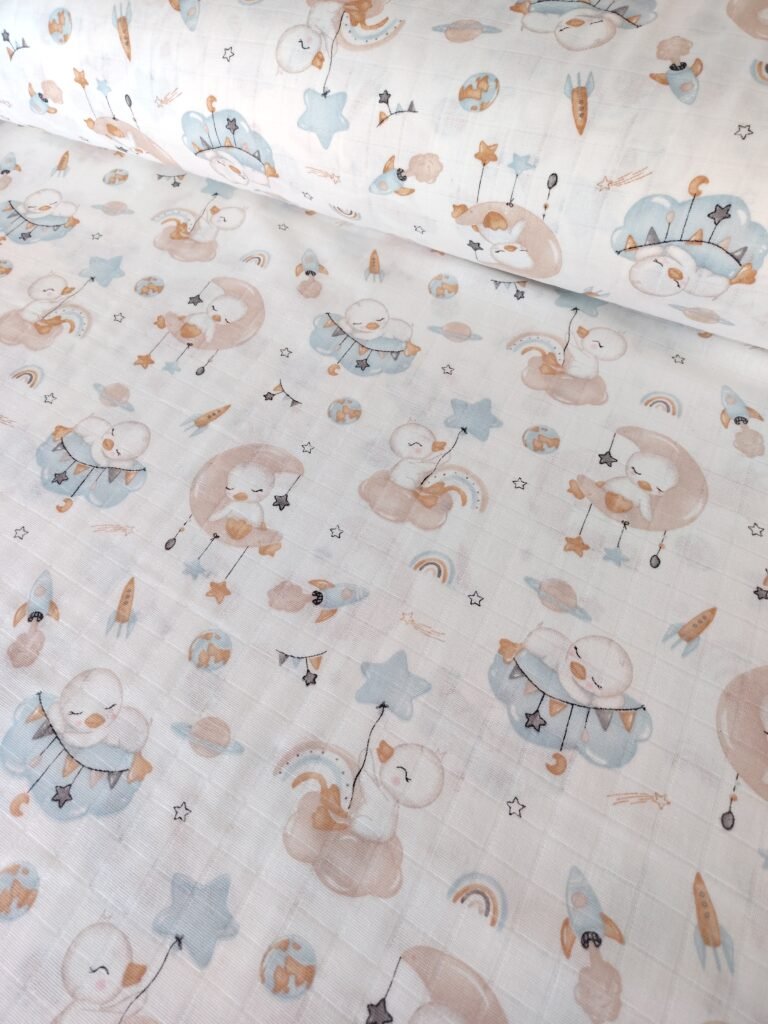 Muslin materijal za tetra pelene – Tetra platno je materijal izrađen od pamuka. Zbog svoje strukture i načina tkanja izuzetno je prijatan i prozračan. Najčešće se koristi za bebi pelene, ali veliku primenu, zbog atraktivnih dezena ,ima kao materijal za lagane prekrivace, letnju odeću, brisalice, podloge…