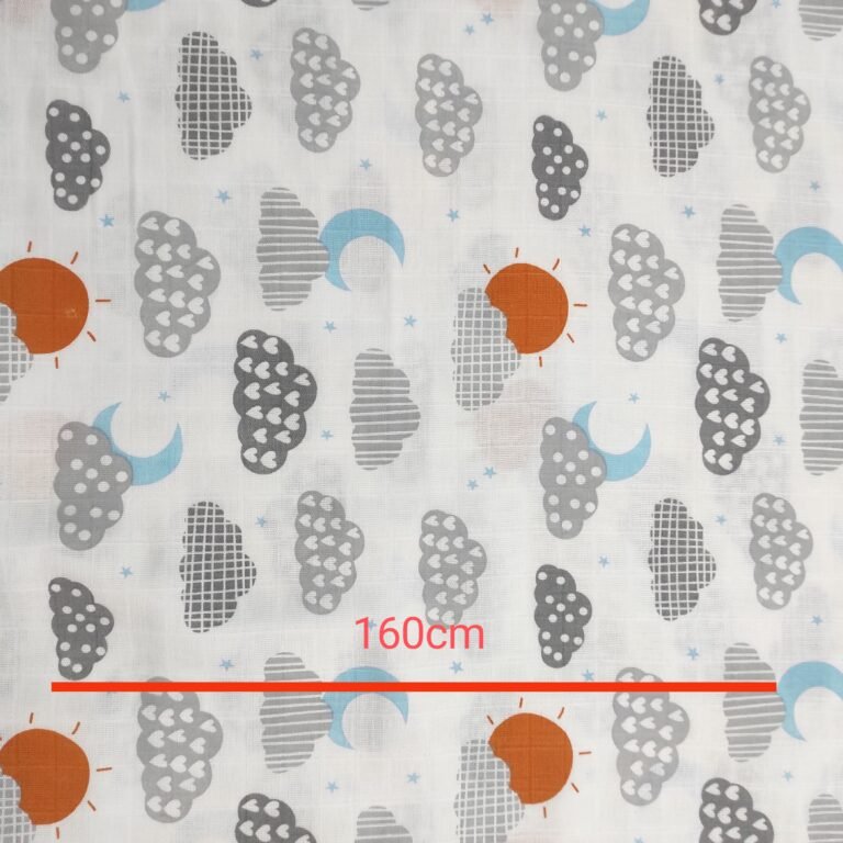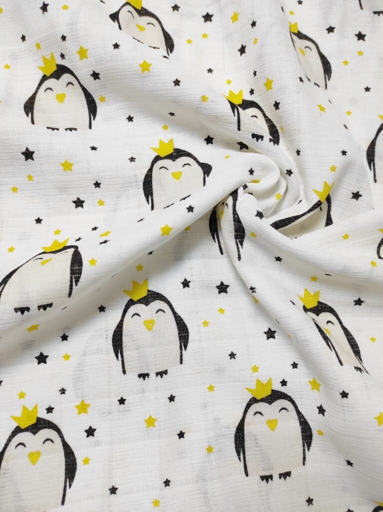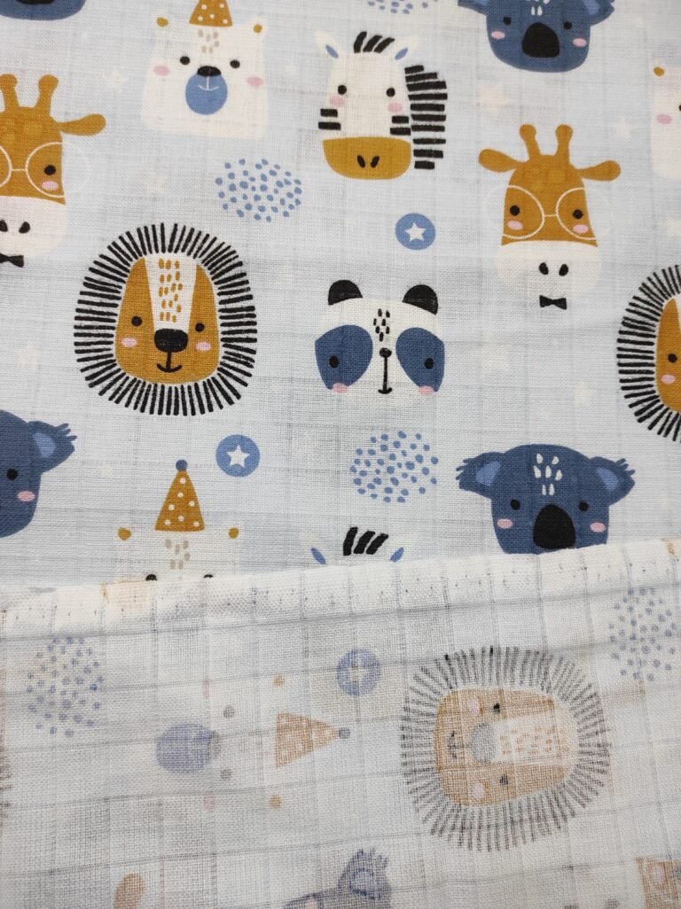Muslin materijal za tetra pelene sa digitalnom stampom – Tetra platno je materijal izrađen od pamuka. Zbog svoje strukture i načina tkanja izuzetno je prijatan i prozračan. Najčešće se koristi za bebi pelene, ali veliku primenu, zbog atraktivnih dezena ,ima kao materijal za lagane prekrivace, letnju odeću, brisalice, podloge…