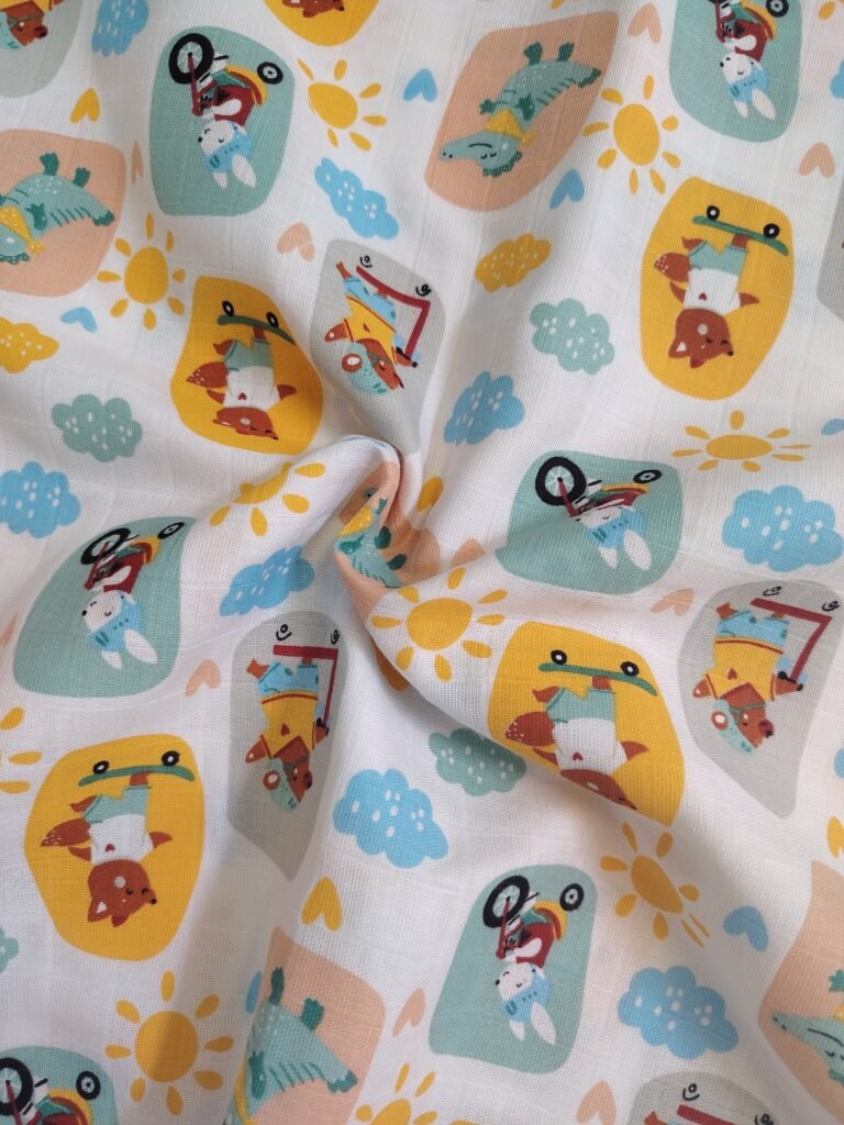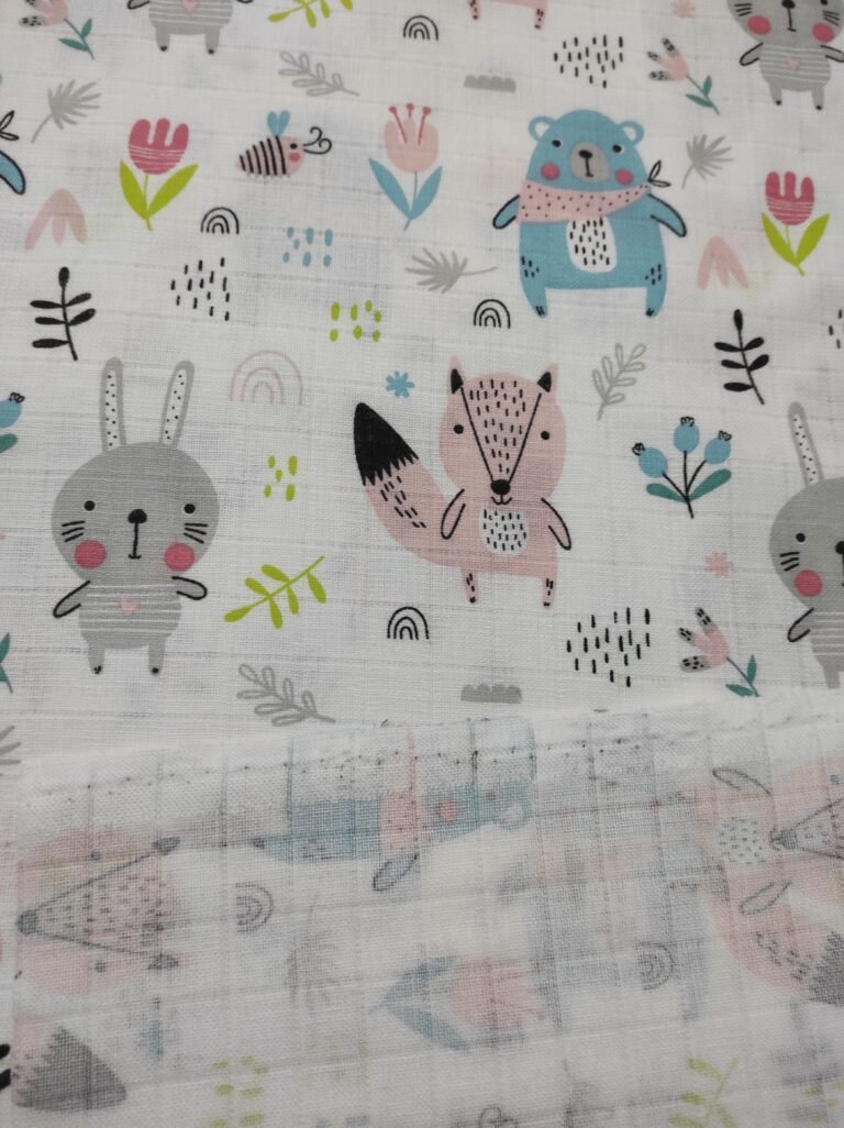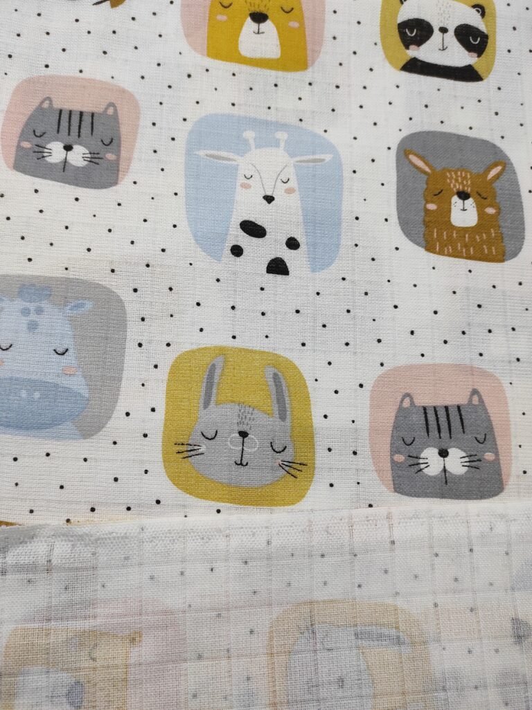 Muslin materijal za tetra pelene – Tetra platno je materijal izrađen od pamuka. Zbog svoje strukture i načina tkanja izuzetno je prijatan i prozračan. Najčešće se koristi za bebi pelene, ali veliku primenu, zbog atraktivnih dezena ,ima kao materijal za lagane prekrivace, letnju odeću, brisalice, podloge…