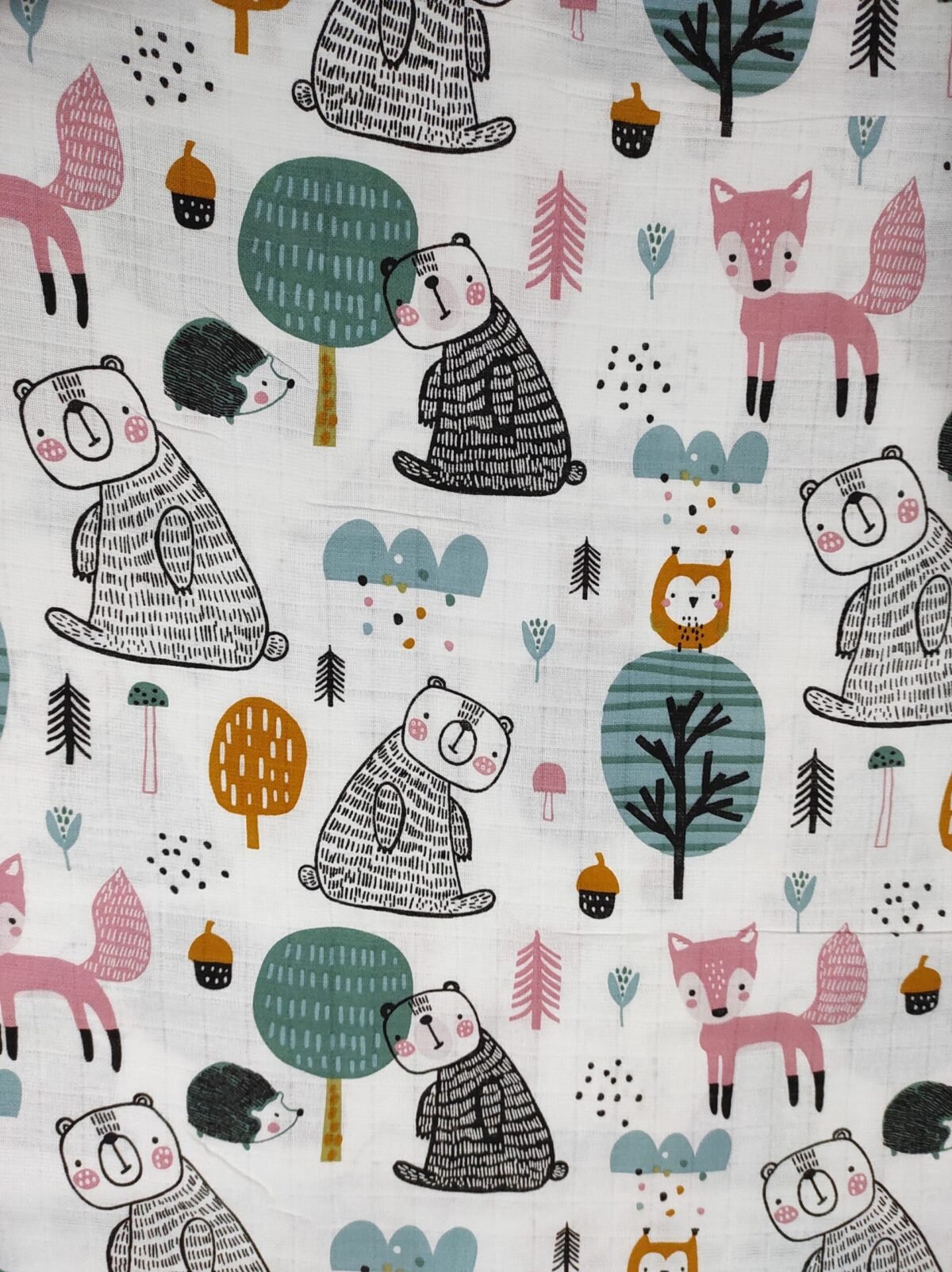 Muslin materijal za tetra pelene – Tetra platno je materijal izrađen od pamuka. Zbog svoje strukture i načina tkanja izuzetno je prijatan i prozračan. Najčešće se koristi za bebi pelene, ali veliku primenu, zbog atraktivnih dezena ,ima kao materijal za lagane prekrivace, letnju odeću, brisalice, podloge…